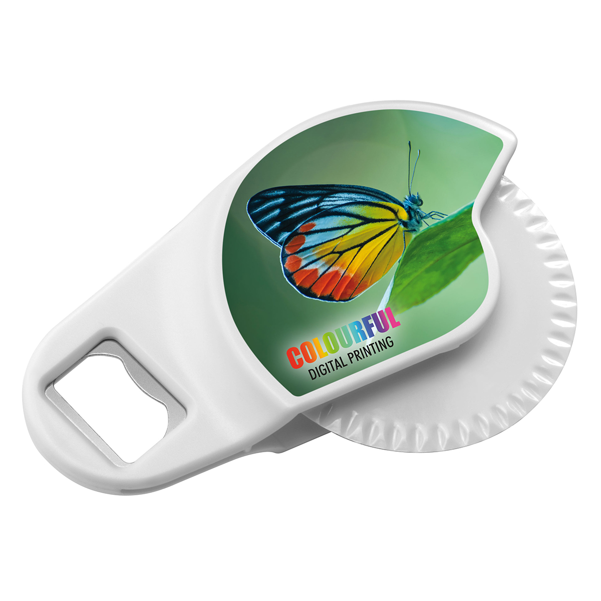 mit stabilem, großen Schneidrad und integriertem Flaschenöffner.