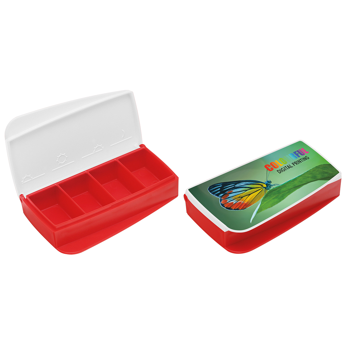 4 Fächer mit sprachunabhängigen Piktogrammen, sehr leichtes Öffnen, auch bei Mobilitäts-Einschränkung
