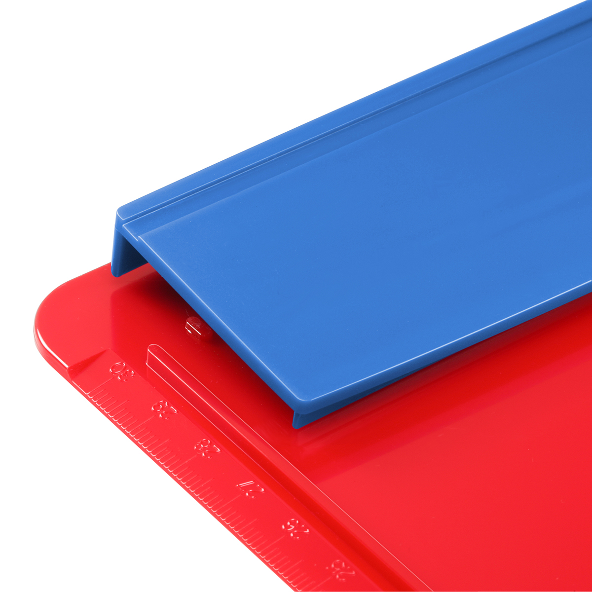 Platte: rot; Leiste: blau mit vertiefter Stiftehalterung, seitl. Anschlag, 30 cm Skala und 4 Filzpunkten auf der Rückseite nur Abverkauf, keine Nachbestellung
