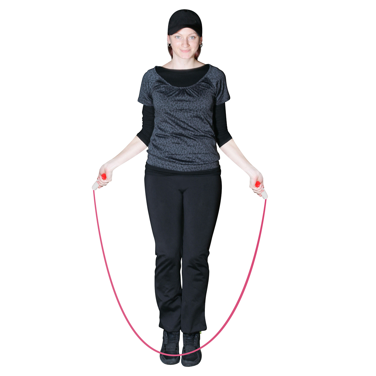 Griff: weiß; Kappe: rot; Seil: pink leicht zu drehen, für optimales Ausdauertraining