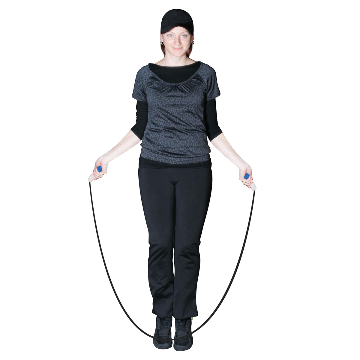 Griff: weiß; Kappe: blau; Seil: schwarz leicht zu drehen, für optimales Ausdauertraining