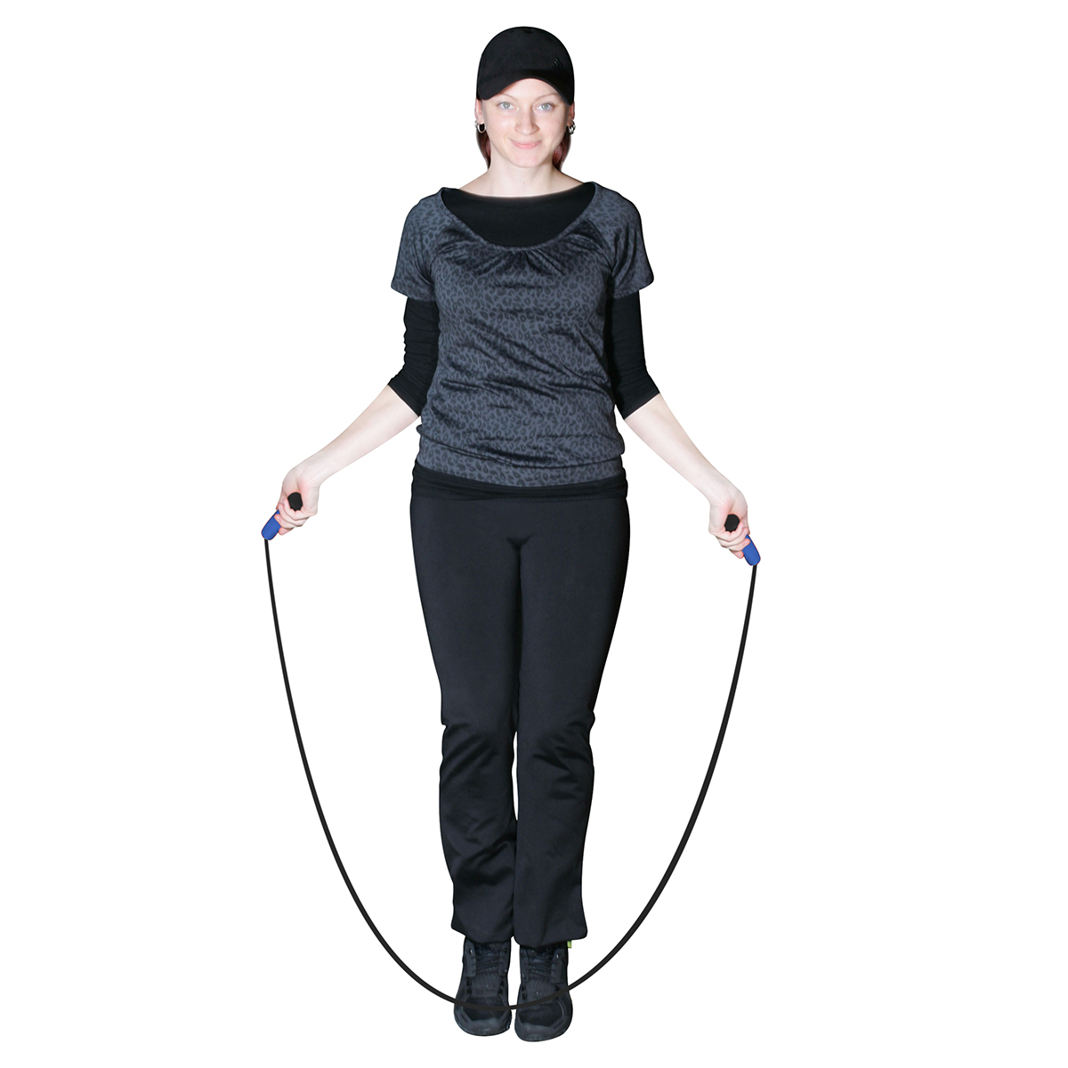 Griff: blau; Kappe: schwarz; Seil: schwarz leicht zu drehen, für optimales Ausdauertraining
