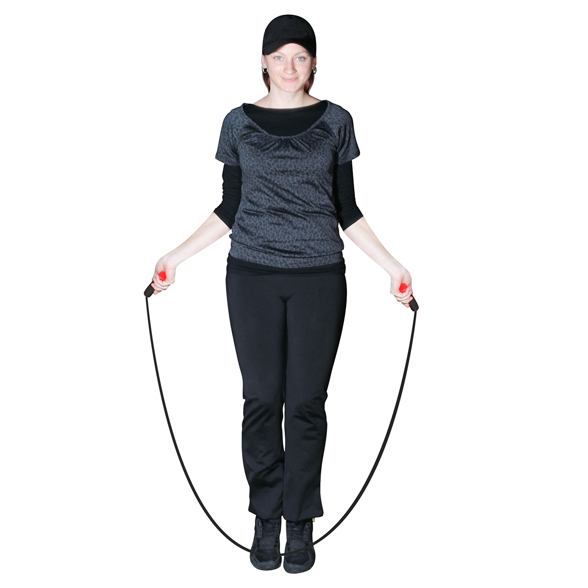 Griff: schwarz; Kappe: rot; Seil: schwarz leicht zu drehen, für optimales Ausdauertraining
