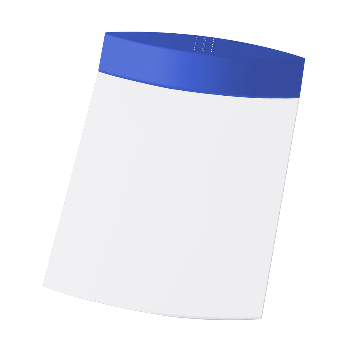Platte: weiß; Klemmteil: blau elegante Form für gehobene Ansprüche, mit Noppen, ohne Papier; AUSLAUFARTIKEL nur Abverkauf, Auslaufartikel 2024