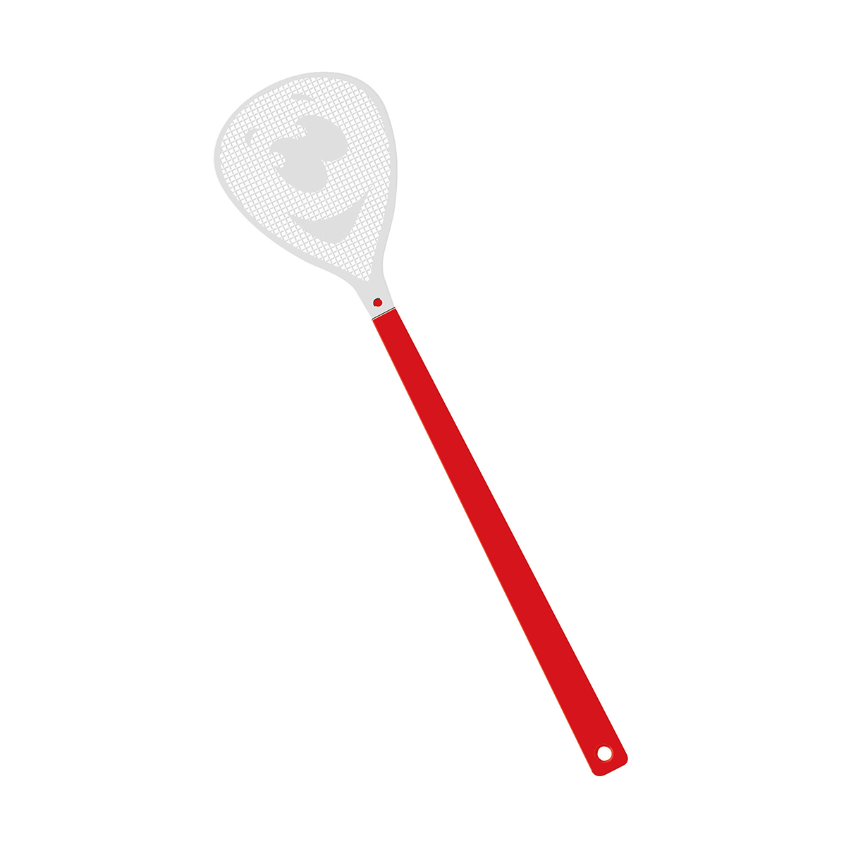 Griff: rot; Klatsche: weiß ein Klassiker unter den Werbeartikeln, Griff mit praktischer Öse zum Aufhängen