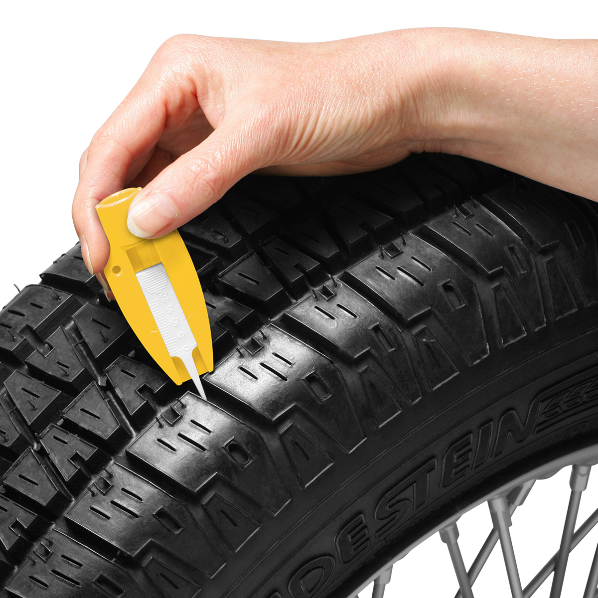 Reifenprofiltiefenmesser mit Ventilkappendreher