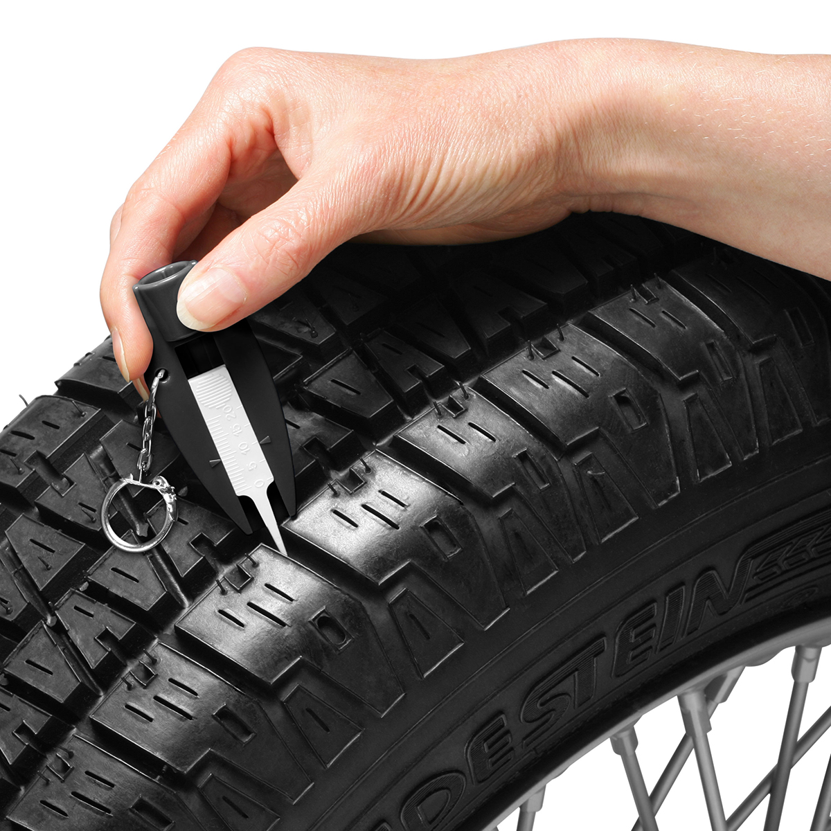 Farbe / Ausführung: Reifenprofiltiefenmesser mit Ventilkappendreher