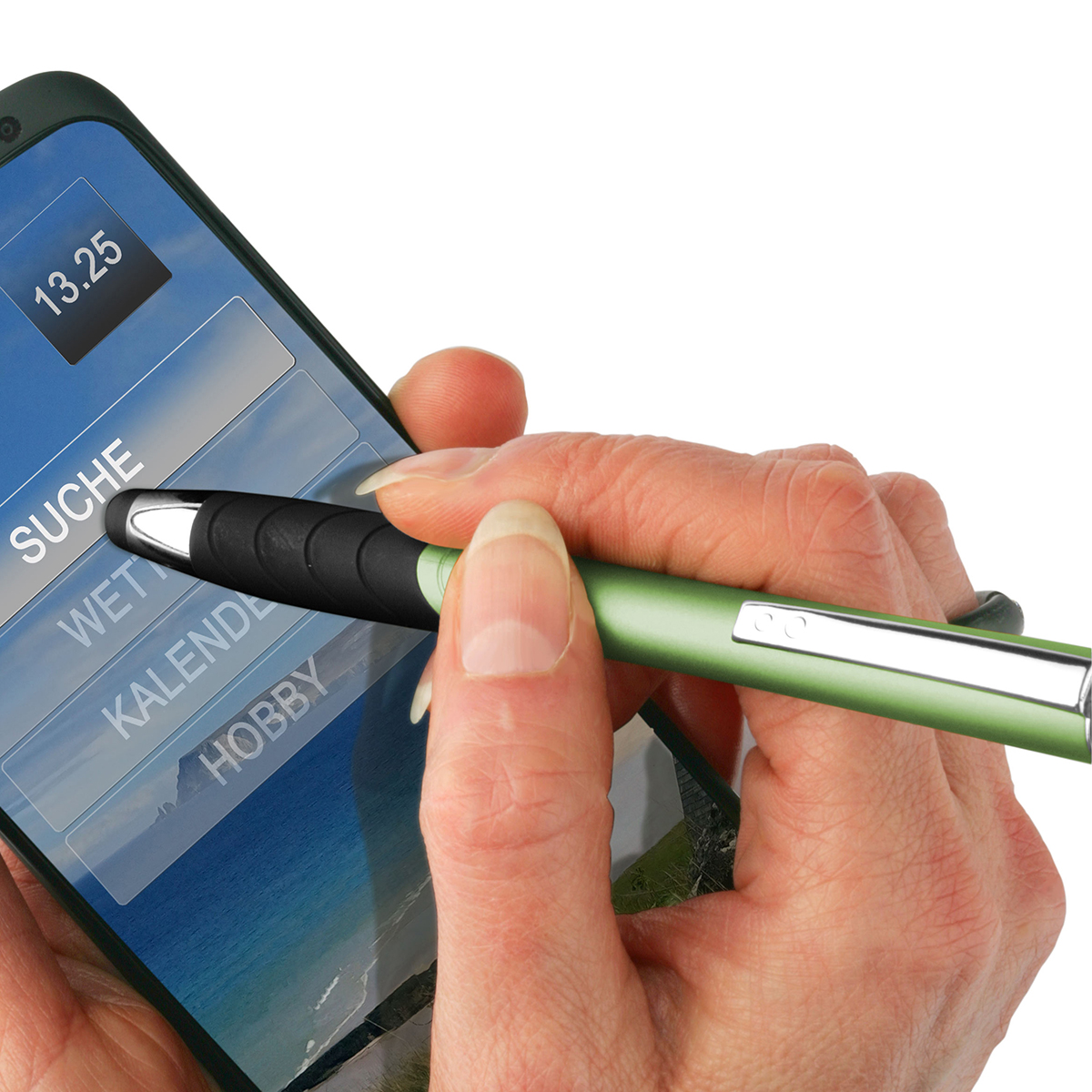 Grundfarbe: hellgrün; Zusatzfarbe: schwarz mit Gummispitze und Softgripzone, Mine X-20, blau schreibend nur Abverkauf, keine Nachbestellung
