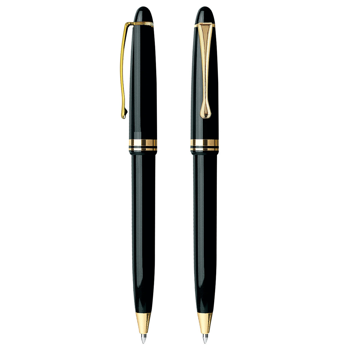 Grundfarbe: schwarz; Zusatzfarbe: gold Clip, Spitze und Dekor gold- bzw. silberfarben, Großraummine, blau schreibend