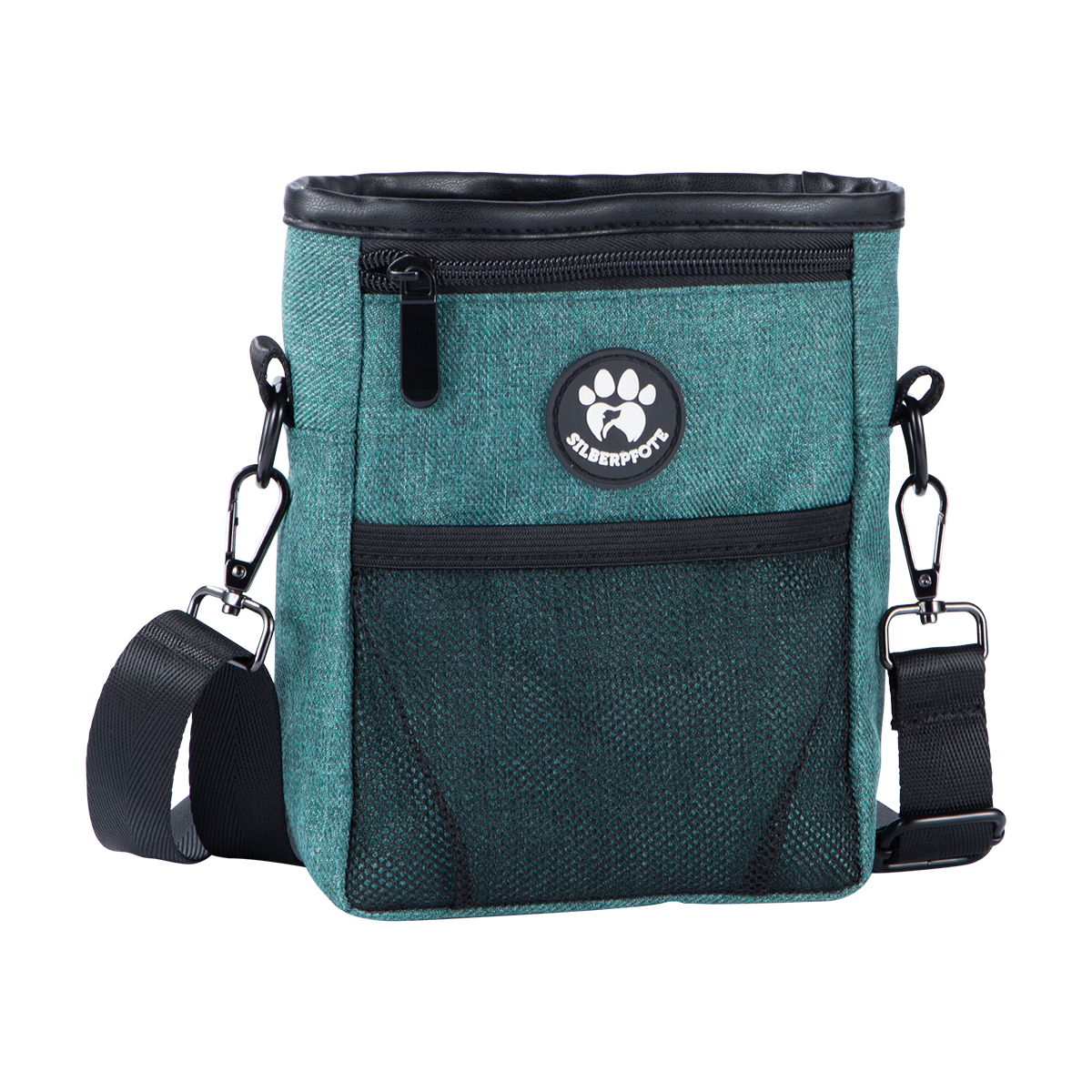 Farbe: schwarz - grün Futterbeutel für das Hundetraining und Gassigehen wasserabweisend, viel Stauraum + Kotbeutelspender Silberpfote